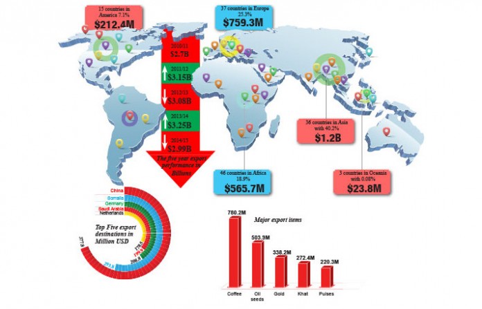 Maddi galii alergii biraa daldala abaabooti. Abaaboo Itoophiyaa %81 kan bittu Nezerlaand yoo ta´u bu´aan DA miliyoona 203 argameera. Gabaan guddaan jimaa Itoophiyaa Somaaliyaa (%80) fi Jibuutii (%17.7)dha. Jimaa Somaaliyatti ergame irraa Itoophiyaan DA miliyoona 217 argachuu dandeetteerti.